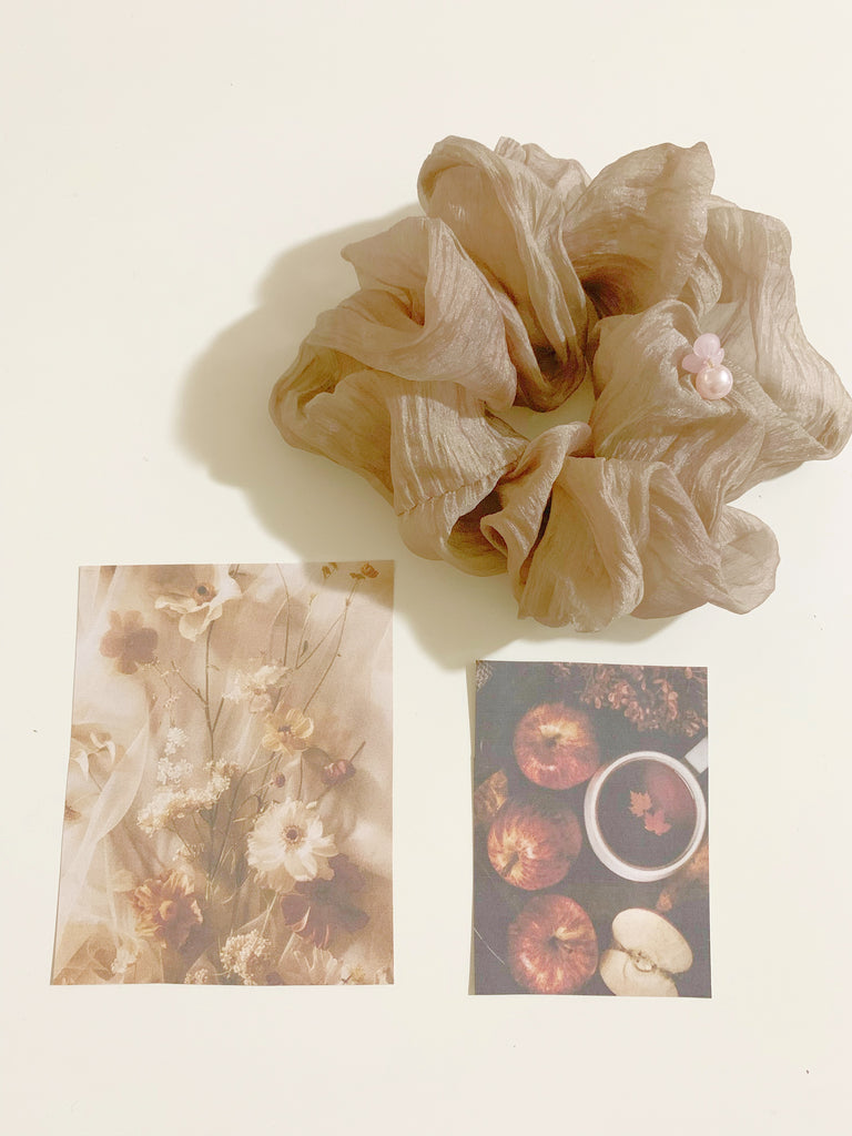 【Mote Mote】 S i l k y c h o u c h o u ( earl grey & cinnamon cotton )* (stone付)